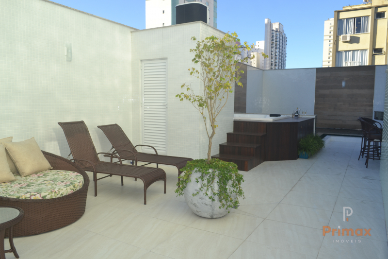 LINDA COBERTURA DUPLEX NO RESIDENCIAL EVELY NO CENTRO DE BALNEÁRIO CAMBORIÚ-SC. AMPLO ESPAÇO DE 502 m2 Área total, 4 Suites, Home, Sala jantar, sala de tv, cozinha, área de serviço, lavabo, terraço com jacuzzi, 4 vagas de garagem.