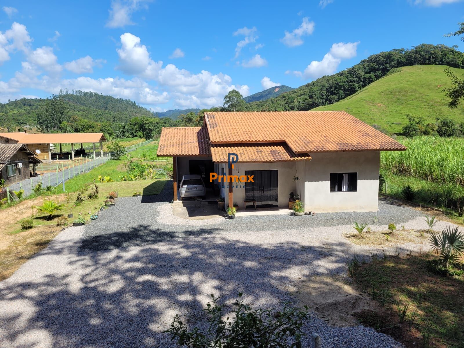 O sítio, com área privativa de 10.030 m2 (dez mil e trinta), possui frente de 33 metros e largura de fundos de 56 metros quadrados, possui uma casa em alvenaria com laje e bom padrão construtivo, construída a 3 anos com área privativa de 140 metros quadrados.