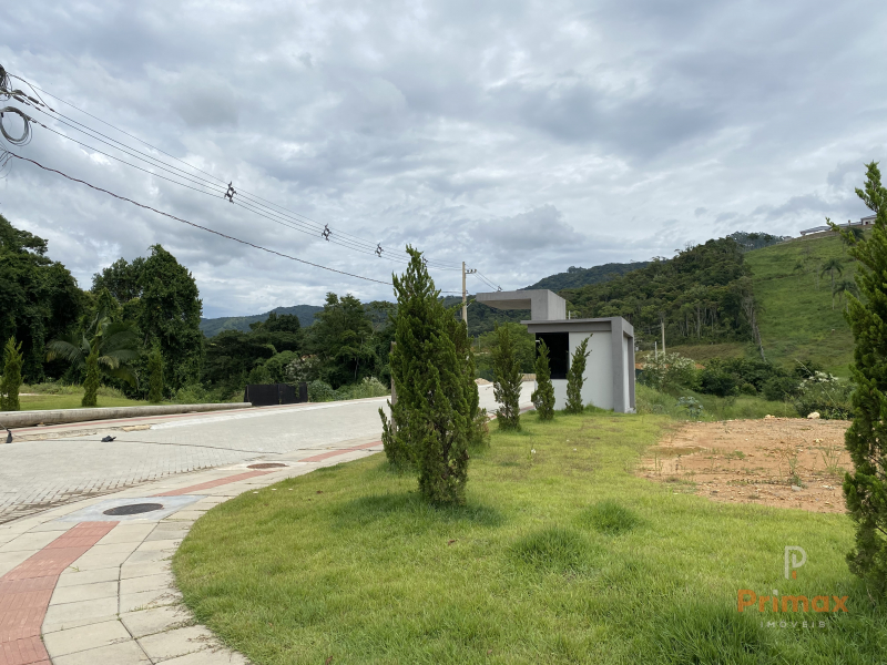 Terreno em loteamento residencial arborizado, com portal de entrada e estrutura de guarita com monitoramento eletrônico.